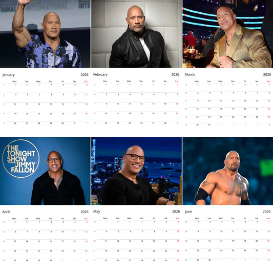 Dwayne Johnson 2026 Wall Calendar – Premium Actor & Wrestling Legend Calendar for Fans, Hollywood Star Gift
